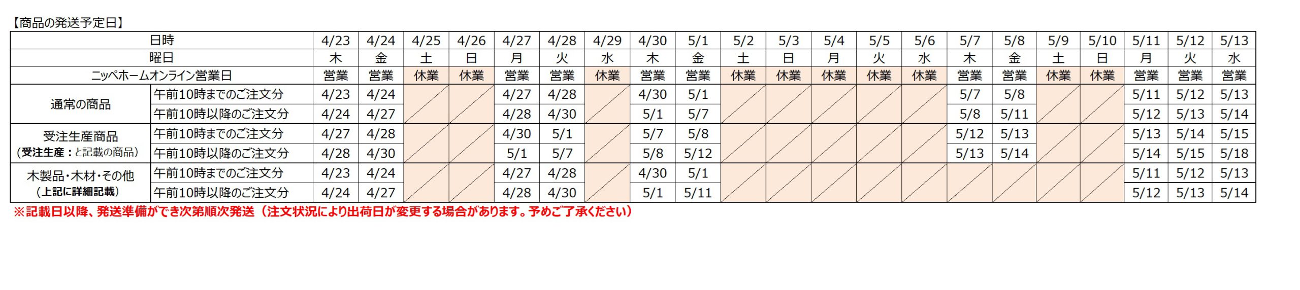 休業期間中もニッペホームオンラインでのご注文、お問合せ等は随時受け付けておりますが、ご対応等は休業期間明けとさせていただきます。